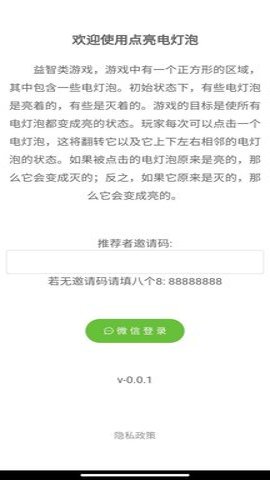 这款游戏设定在一个正方形的区域,区域内有多个电灯泡。初始时,电灯泡的状态各不相同,有些是亮的,有些是灭的。玩家的目标是通过点击电灯泡,改变它们的状态,最终使所有电灯泡都变为亮的。每次点击不仅会影响被点击的电灯泡,还会影响它周围上下左右相邻的电灯泡,这样的互动机制让每一次点击都充满了策略性。