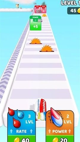 3、牙膏冲刺跑的操作简单易懂,适合各个年龄段的玩家,无需复杂的教程即可快速上手,带来轻松愉快的游戏体验。