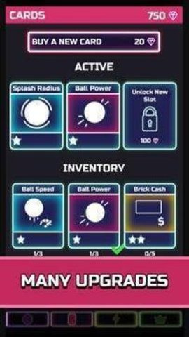 2、通过收集卡片,玩家可以提升球的速度和力量,增强消灭砖块的能力,增加了游戏的策略性。