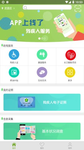 3、在线申请服务,持证和未持证的残疾人均可通过APP申请各项服务,提供便捷的服务通道。