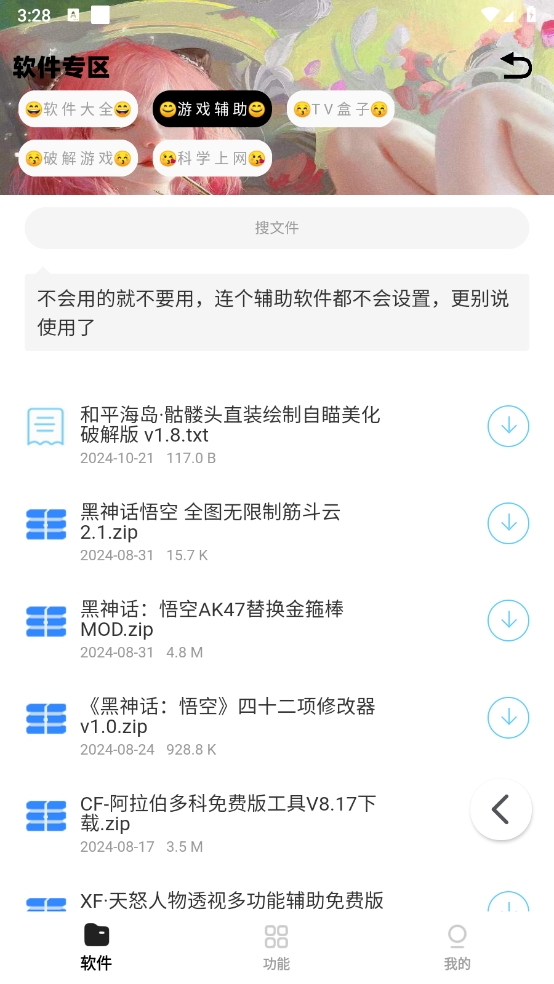 1、资源浏览:主界面按资源类型划分了不同专区,滑动屏幕即可浏览各专区下的热门与最新内容。