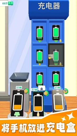 在游戏的开始阶段,玩家需要熟悉不同手机的充电需求和充电器的功率。每种手机都有特定的电量和充电速度,玩家可以通过拖放操作,将手机放入相应的充电器盒中。合理的组合可以提升充电效率,帮助顾客快速充电。