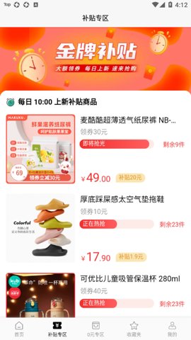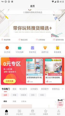 在应用首页找到0元专区,参与拼手速抢购活动,成功抢到的商品将免费送出。
