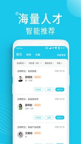 2、智能推荐功能根据企业发布的职位信息,自动匹配高匹配度的简历,省去人工筛选的时间。