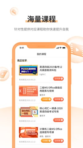 2、课程分类清晰,根据不同的考试和技能需求,快速找到所需课程,节省查找时间。