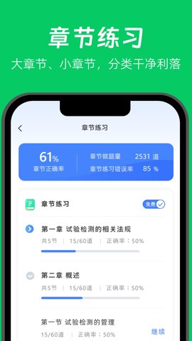 1、章节练习功能让针对性地进行复习,帮助巩固每个知识点。