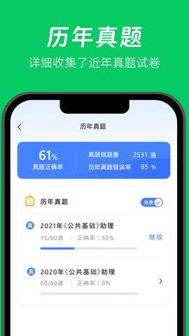 2、历年真题模块提供详细的真题试卷,帮助用户熟悉考试的出题风格和难度。