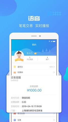 5、语音播报功能,商户在每笔交易发生时都会收到语音提醒,确保及时掌握交易动态。