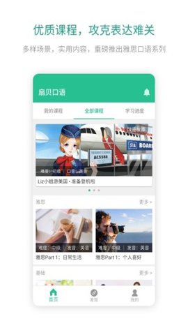 1、课程内容涵盖从零基础到高级的多种英语口语学习模块,根据自身水平选择最合适的课程。