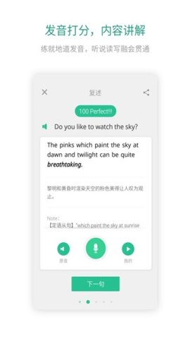 3、提供智能打分功能,帮助用户实时纠正发音错误,确保学习效果更加显著。