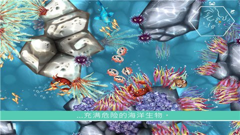 3、丰富的地图场景等待玩家去解锁,探索不同的海底环境,感受各具特色的海洋生物。