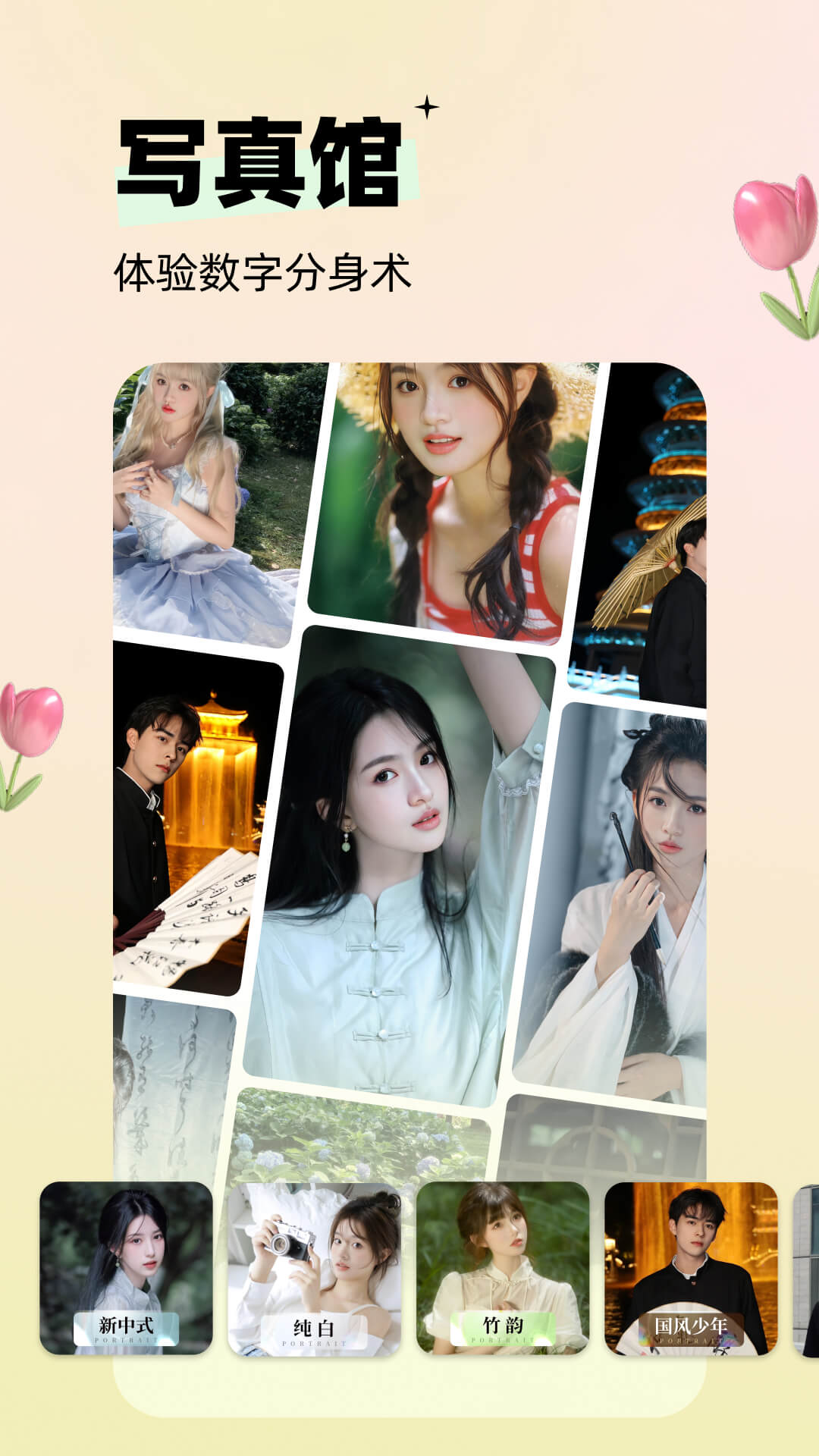 3、针对人像处理提供了多套预设模板,这些模板定义了妆容、光影与背景的组合方案。