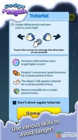在游戏开始时,玩家将看到一只可爱的企鹅站在屏幕的底部。通过简单的左右滑动手指,玩家可以控制企鹅的移动,躲避从天而降的各种障碍物。随着关卡的推进,障碍物的种类和数量会逐渐增加,玩家需要不断调整自己的反应速度,以避免被击中。