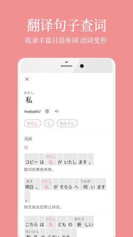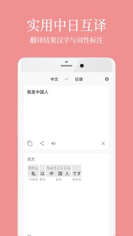 2、提供中日互译功能,翻译结果附带假名和词性标注,方便用户理解和发音。