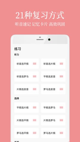 3、精心编排的五十音练习题,题目覆盖从基础到进阶的各个难度级别,确保用户能够逐步提高学习效率。