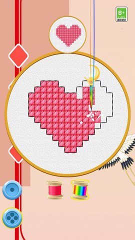 1、玩家可以根据自己的喜好选择不同的绣布和绣针,创造出个性化的艺术作品,充分展现自我风格。