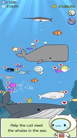 小猫的形象生动可爱,玩家在游戏中不仅能体验清理垃圾的乐趣,还能与各种海洋生物互动,增加了亲切感。