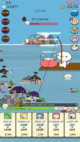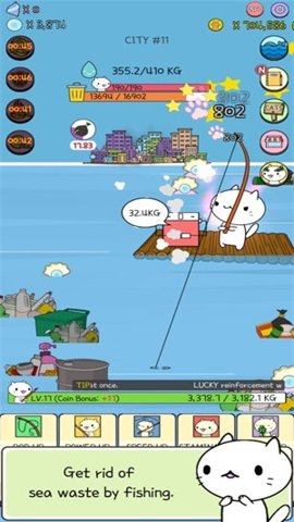 清理垃圾的方式是多样的,玩家可以选择使用钓鱼竿来钓取水面上的垃圾,或者使用潜水器深入海底,寻找沉积在沙底的垃圾。每种方式都有其独特的操作感,玩家可以根据自己的喜好选择合适的方式进行清理。清理成功后,玩家将获得积分和奖励,帮助提升小猫的能力。
