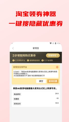 1、天猫淘宝优惠券一键搜索领取,想要的商品再也不用苦等降价。