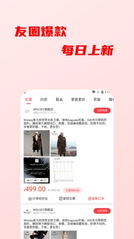 3、实时榜单一键搜券&mdash。&mdash。找优惠更方便朋友圈火爆商品,复制文案即可分享给好友或者朋友圈。