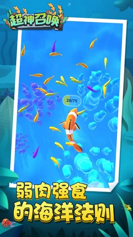 超神召唤是一款以大鱼吃小鱼为核心玩法的休闲游戏。在这个广阔的海洋世界中,玩家将化身为一只小鱼,努力在生存竞争中脱颖而出。游戏的目标非常明确:通过吞噬比自己更小的鱼类来不断壮大自己,最终成为海洋中的霸主。不过,海洋并不安全,随时都有可能遭遇更大的鱼类的威胁。为了生存,玩家需要时刻保持警惕,灵活运用技巧,巧妙地规避大鱼的追击,寻找机会快速成长。游戏的节奏紧凑,充满了挑战与乐趣,非常适合喜欢休闲游戏的玩家。