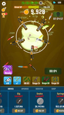 除了基本的切水果玩法,丰富的道具和技能供玩家使用。玩家可以在游戏中收集不同的飞刀,通过升级来增强它们的切割能力。每种飞刀都有独特的技能,比如提高攻击力或增加切割速度,合理运用这些技能能够帮助你更快地完成关卡。