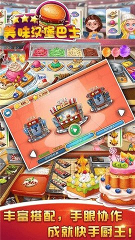 美味汉堡巴士的背景设定在一个充满活力的城市,玩家需要通过经营汉堡巴士来吸引顾客。游戏的核心玩法包括制作汉堡、饮品和甜点,玩家可以根据顾客的需求来调整菜单,体验不同的经营策略。