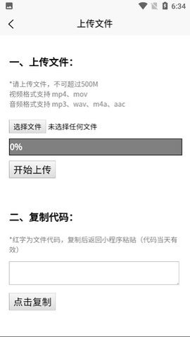 2、在首页,看到“上传音频”按钮,点击进入文件选择界面。