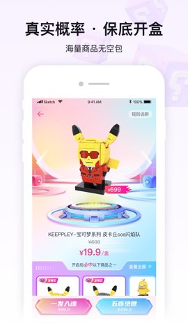 1、通过一键抽盲盒,享受随机惊喜,体验到开盲盒的刺激感,增加购物的乐趣。