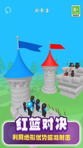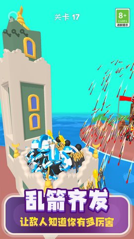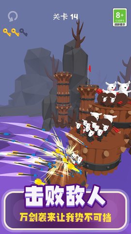 1、玩家通过简单的滑动和点击操作来发射箭矢,精准打击敌人,提升自己的射击技巧。