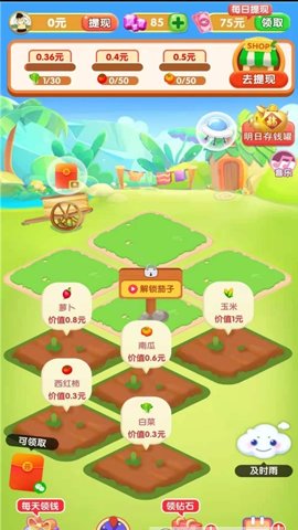3、升级与扩展系统,随着游戏进展,玩家可以通过赚取的红包奖励提升菜园设施,购买更好的种子和农具,扩大种植规模。