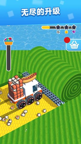 收割到的资源可以用来购买升级,玩家可以选择提升收割机的速度、力量和容量等属性。升级后的收割机能够更快地收割资源,提升效率,从而获得更多的钞票。升级机制让玩家在游戏中不断感受到成长和进步,激励他们挑战更高的关卡。