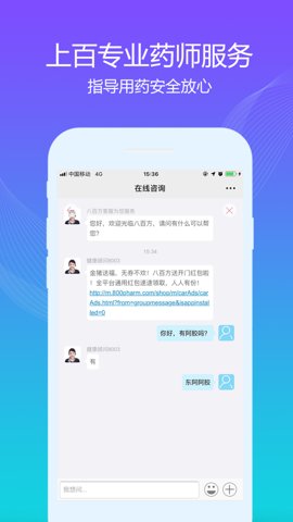 八百方配备持有《执业药师资格证书》的专业药师,提供免费的药品咨询服务,帮助用户解决在用药过程中遇到的各种疑问,确保用药安全。