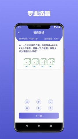 智商测试应用致力于为用户提供专业、全面的智力测试体验。通过这款软件,您可以轻松参与标准化的智商测试,了解自己的智力水平。软件不仅提供了丰富的测试题库,还能在测试后为您生成详细的分析报告,让您对自己的智力有更深入的认识。无论是想要了解自己的智商,还是希望通过测试提升思维能力,这款应用都能满足您的需求,快来下载体验吧!