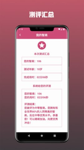 2、根据年龄段进行智商测试,系统会自动计算并给出相应的智商评分。