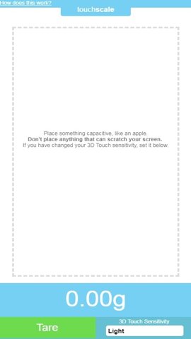 借助3D Touch技术,TouchScale能够准确测量物体的重量,通过施加不同的压力来获得更加精确的读数,最大可显示407.31克。
