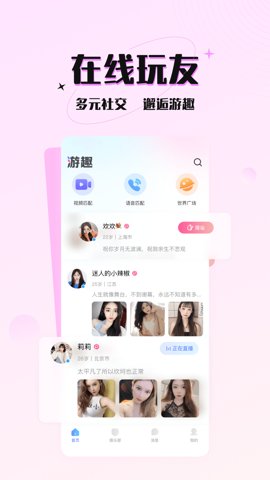 游趣app是一款全新的兴趣聊天交友软件,致力于为用户提供一个轻松愉快的交友体验。它通过一键匹配功能,让志趣相投的朋友快速相识,开启愉快的约会聊天旅程。无论你是在寻找心动对象,还是希望告别单身,游趣都能为你提供多种趣味玩法,让交友变得更加轻松有趣。下载游趣,找到一个让你心动的人,开启你的交友新篇章。