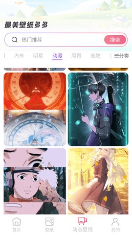 2、在主页上滑动浏览不同类型的壁纸,选择感兴趣的分类,如动漫、风景等。