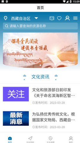 1、打开西藏公共文化云平台,用户会看到首页展示的最新文化资讯和推荐活动。