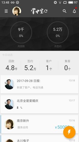 1、客户管理模块支持快速新建客户,通过扫描名片一键录入客户信息,节省时间。