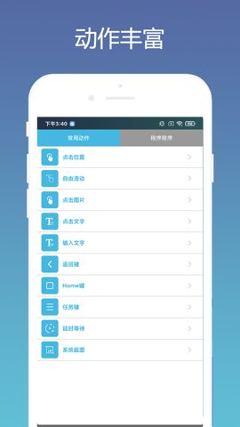 1、支持自定义动作,根据自己的需求设置点击、滑动等操作,灵活性极高。