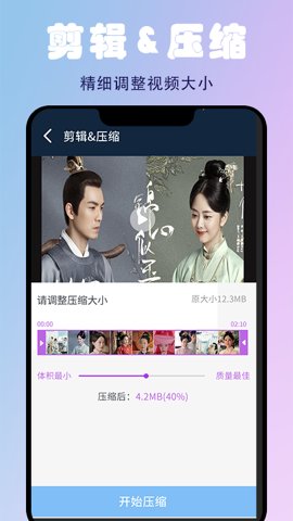 1、支持一键压缩功能,用户只需轻轻一按,就能快速完成视频压缩,节省存储空间。