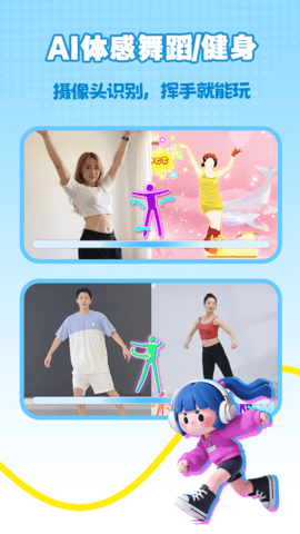 1、AI视觉动作捕捉技术仅需调用手机摄像头即可完成精准的动作识别,无需佩戴任何额外硬件设备就能实现全身动作的追踪与解析。