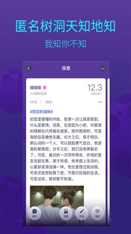 4、私密的树洞功能,在这里自由表达自己的情感,倾诉内心的秘密,享受一个安全的倾诉空间。