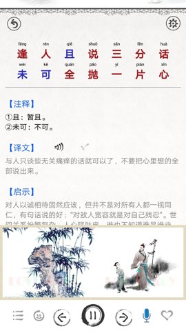 软件不仅包含《增广贤文》的原文,还提供详细的注释、译文和启示,帮助用户全面理解其中的哲理和道理。
