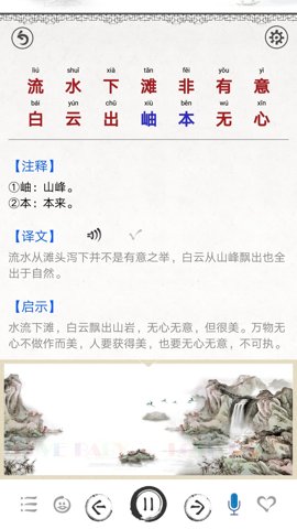 软件内置国学古典音乐,营造出浓厚的学习氛围,让用户在学习的同时感受到传统文化的韵味。