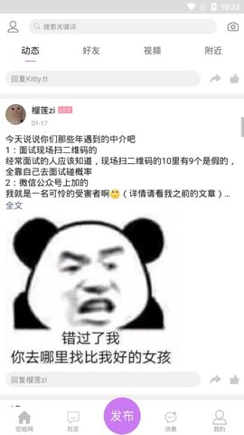 5、查看周边其他用户和帖子,增加互动机会,拓展社交圈。