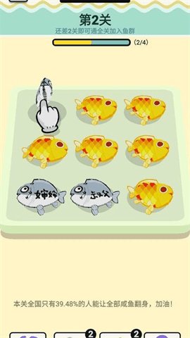 1、咸鱼翻身啦的关卡设计巧妙,玩家在每个关卡中都能感受到新鲜感,挑战的节奏恰到好处,既不会让人感到乏味,也不会过于困难。