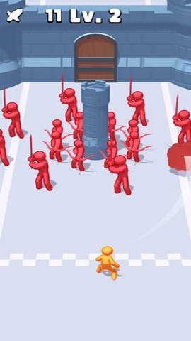 1、每当玩家在关卡中砍倒的橡皮人数量增加,游戏的节奏会随之加快,快速变化的体验让玩家的注意力始终保持在高峰状态。