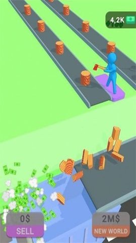 1、玩家通过点击屏幕来劈柴,获取木材资源的同时,不断提升自己的劈柴技能,以便在游戏中获得更高的收益。